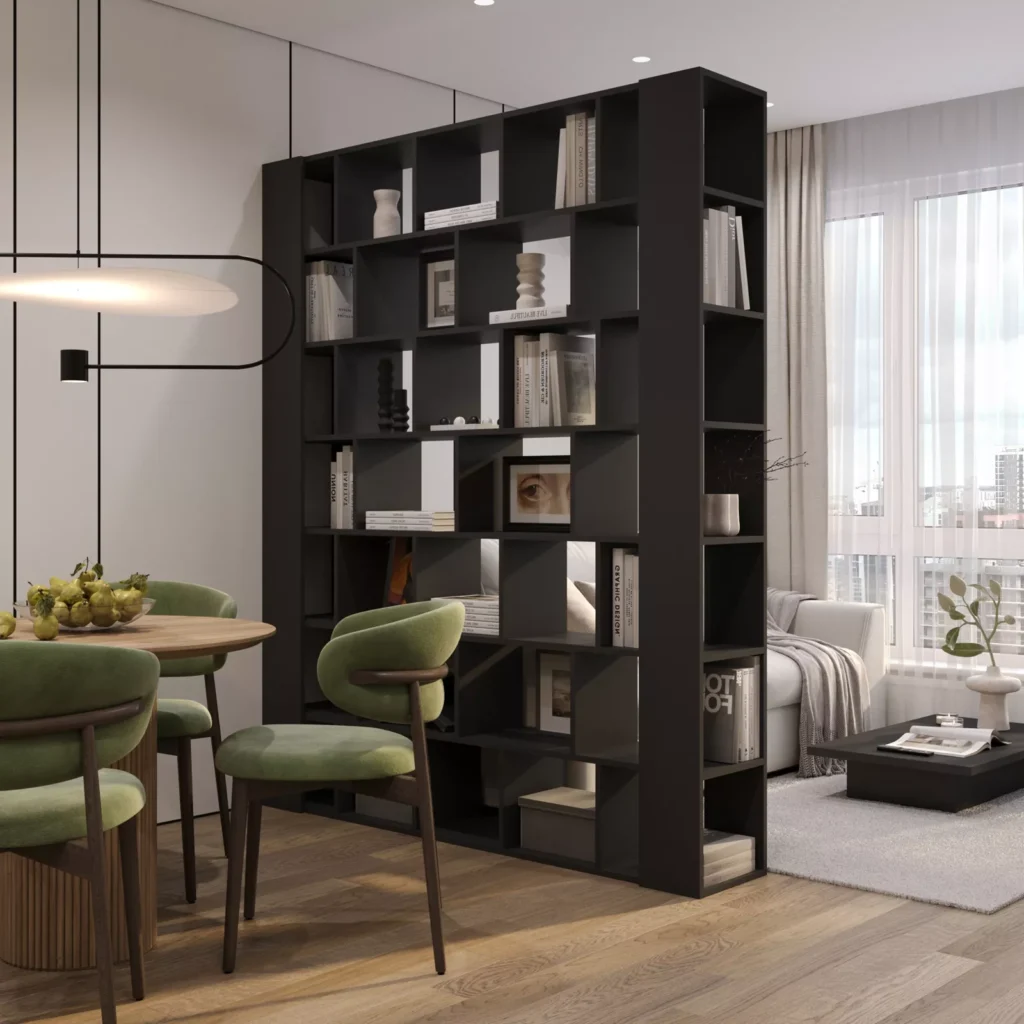 Jeśli chcesz kompromis między lekkością a porządkiem, świetnie działa układ mieszany: otwarte półki na górze na książki i dekoracje oraz zamykana część na dole na rzeczy, które robią wizualny bałagan. Taka nowoczesna biblioteczka jest praktyczna, wygląda schludnie i sprawia, że biblioteczka w domu pozostaje estetyczna nawet wtedy, gdy salon żyje na co dzień.