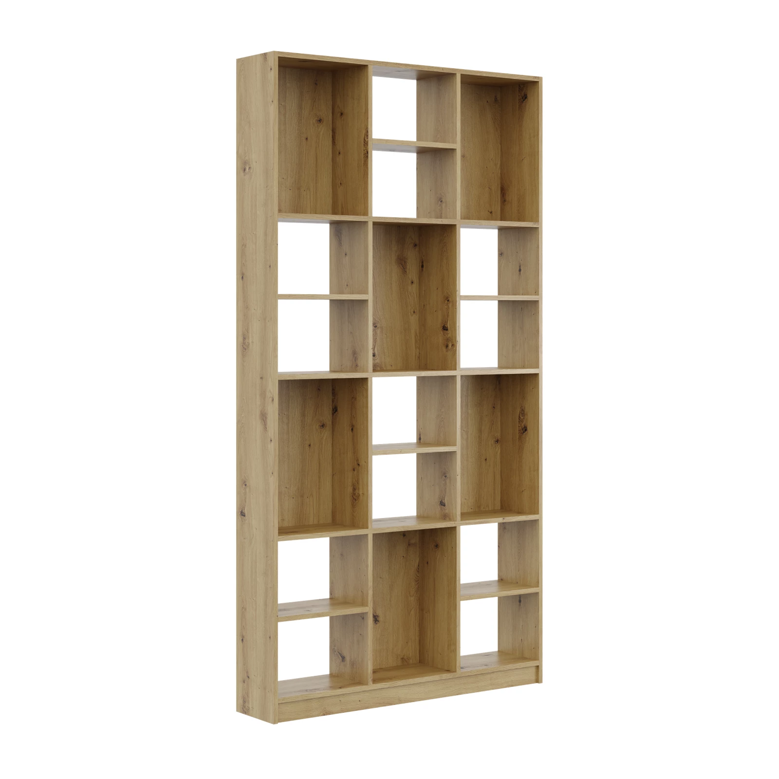 Regał wykończony okleiną PCV od frontu i na krawędziach. Otwarty tył zapewnia lekką formę oraz łatwy dostęp do przewodów (np. lampki, router). To idealny regał na książki i dekoracje — sprawdzi się jako biblioteczka w salonie, praktyczny mebel do pokoju dziecka czy domowego biura. Pionowe elementy boczne wzmacniają konstrukcję, a 5-mm ślizgi (nóżki) gwarantują właściwą dylatację i ochronę podłogi. Szukasz regału, który uporządkuje przestrzeń i subtelnie wyeksponuje ulubione tomy, rośliny i pamiątki? Ten model zrobi to znakomicie.